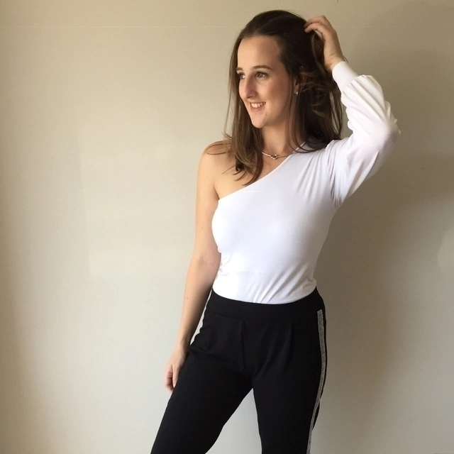 Blusa de uma manga só com punho largo e manga fofa